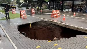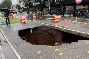Uma cratera se abriu na manhã desta segunda-feira (13) na Avenida São Paulo, ao lado do shopping Avenida Center, na área central de Maringá. De acordo com o...