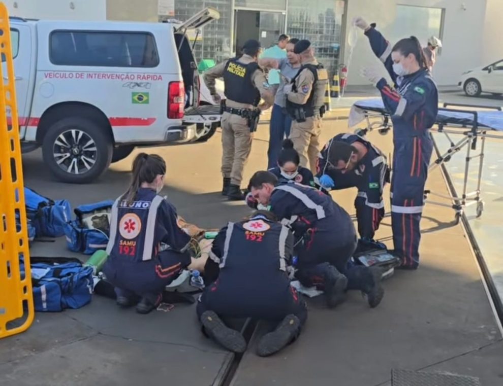 O estado de saúde do motorista Lucas de Lima Siqueira, de 29 anos, é considerado grave. Ele foi atingido por um golpe de faca no pescoço após uma briga com um motociclista na tarde de ontem, na avenida Doutor Gastão Vidigal, em Maringá. Apesar do ferimento, Lucas conseguiu caminhar até um posto de combustíveis, onde pediu ajuda. Ele foi socorrido por equipes do SAMU e do Corpo de Bombeiros, sendo encaminhado a um hospital da cidade. Segundo as informações, devido à gravidade do ferimento e ao rebaixamento do nível de consciência, ele precisou ser entubado ainda no local.