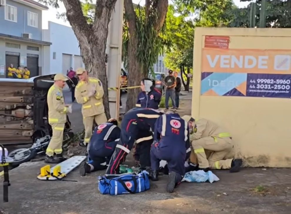 Um grave acidente registrado na tarde do último sábado (19) em um cruzamento do Jardim Seminário, em Maringá, deixou um motociclista em estado muito grave e outras duas pessoas com ferimentos leves. A colisão ocorreu no encontro das ruas Vereador Arlindo Planas e um cruzamento secundário, quando Henrique da Silva, de 27 anos, que conduzia uma motocicleta, teria avançado a via preferencial e acabou sendo atingido por um veículo Ford Fiesta. Com o impacto, o carro perdeu o controle e tombou na pista. Dentro do veículo estavam uma mulher e seu filho, que sofreram apenas escoriações leves.