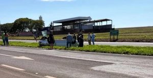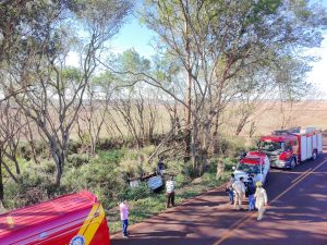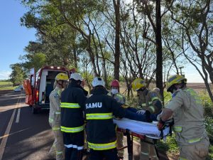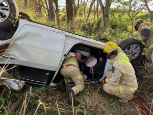 Idosa fica ferida após capotamento na PR-551, próximo a Ivatuba