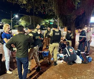 Um motociclista ficou gravemente ferido após um acidente ocorrido na noite desta segunda-feira (5), na Avenida Tuiuti, em frente ao Shopping Cidade, sentido estação rodoviária. A colisão envolveu a moto pilotada pela vítima e um Fiat Uno. Segundo informações preliminares, o motorista do carro realizou uma conversão à esquerda em um local onde a manobra é proibida, o que causou o impacto. A motocicleta atingiu a lateral do veículo, e com a força da batida, o condutor da moto foi arremessado por vários metros, sofrendo múltiplas fraturas.