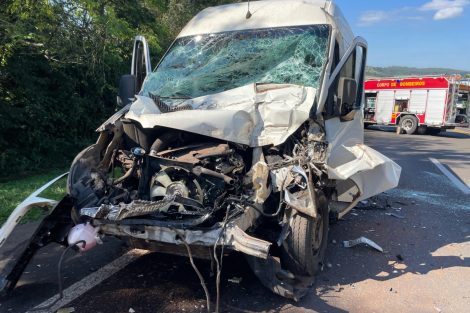 Equipes do Corpo de Bombeiros, do SAMU e do serviço aeromédico foram acionadas para atender à ocorrência. O motorista da van sofreu ferimentos e foi socorrido com dores abdominais. De acordo com o médico do SAMU, Marcos Bitencourt, a vítima estava consciente, orientada e foi encaminhada em estado estável para o Hospital Universitário de Maringá, onde passará por exames complementares.