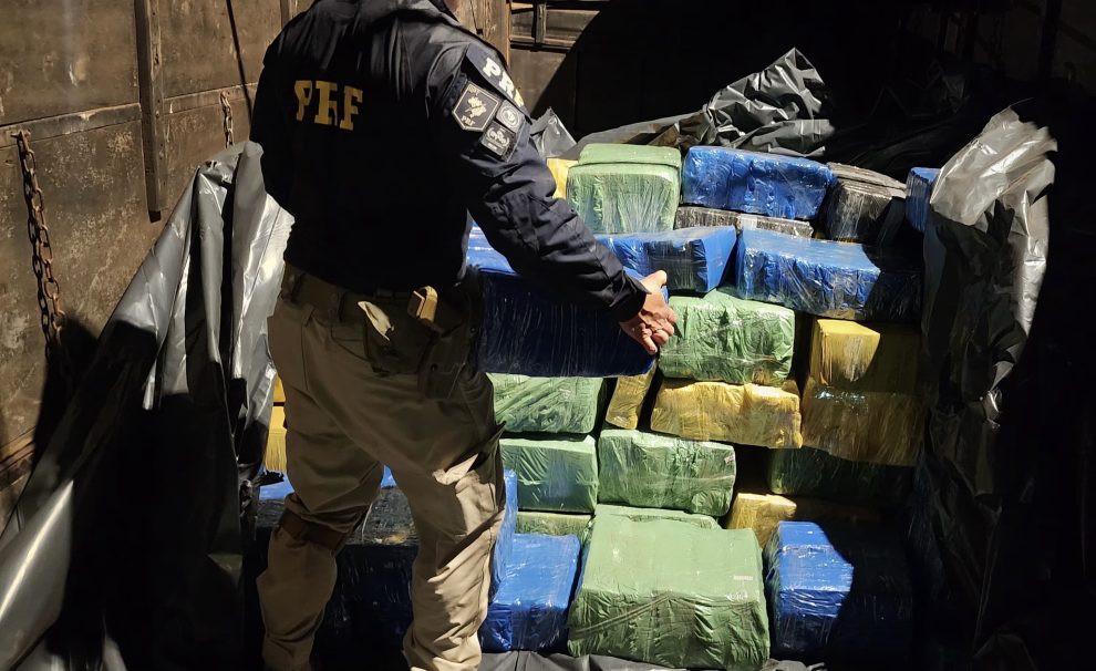 Apucarana, PR – Uma grande apreensão de drogas foi realizada na tarde desta terça-feira (4), por agentes da Polícia Rodoviária Federal (PRF), em Apucarana. A ação teve início por volta das 17h00, no km 249 da BR-376. Policiais rodoviários federais realizavam uma fiscalização de rotina em frente à Unidade Operacional quando deram ordem de parada ao condutor de uma carreta Scania. No entanto, a ordem foi ignorada. O motorista empreendeu fuga, dando início a uma breve perseguição. Após cerca de três quilômetros, a equipe da PRF conseguiu abordar o veículo.