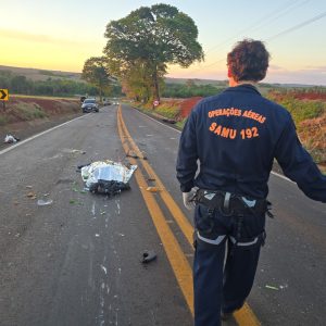Um morador de Floresta, de 35 anos, perdeu a vida na tarde deste domingo (19) em um grave acidente de trânsito registrado na rodovia PR-546, entre as cidades de Floresta e Itambé, na região de Maringá. A vítima foi identificada como Marcelo Ribeiro da Silva Espíndola. Ele pilotava uma motocicleta e seguia sentido a Floresta quando acabou se envolvendo em uma colisão com um caminhão, que não foi localizado no local do acidente. O motorista do caminhão fugiu e ainda não foi identificado.