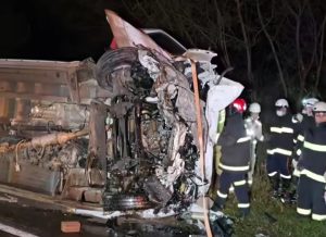 Uma colisão frontal registrada no final da noite desta quinta-feira (12) resultou em três mortes na PR-897, no contorno de Marialva, próximo ao trevo de acesso ao distrito de Aquidaban, no norte do Paraná. O acidente envolveu um veículo GM Astra, que seguia sentido Mandaguari, e uma van de uma empresa de Maringá, que trafegava na direção oposta. Segundo a Polícia Rodoviária Estadual (PRE), testemunhas relataram que o Astra estava em alta velocidade. Em determinado trecho da rodovia, o condutor perdeu o controle da direção, atravessou o canteiro central e bateu de frente contra a van. O impacto foi violento: o Astra ficou completamente destruído e a van acabou tombando sobre a pista.