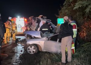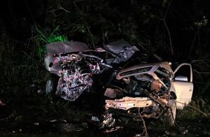 Uma colisão frontal registrada no final da noite desta quinta-feira (12) resultou em três mortes na PR-897, no contorno de Marialva, próximo ao trevo de acesso ao distrito de Aquidaban, no norte do Paraná. O acidente envolveu um veículo GM Astra, que seguia sentido Mandaguari, e uma van de uma empresa de Maringá, que trafegava na direção oposta. Segundo a Polícia Rodoviária Estadual (PRE), testemunhas relataram que o Astra estava em alta velocidade. Em determinado trecho da rodovia, o condutor perdeu o controle da direção, atravessou o canteiro central e bateu de frente contra a van. O impacto foi violento: o Astra ficou completamente destruído e a van acabou tombando sobre a pista.